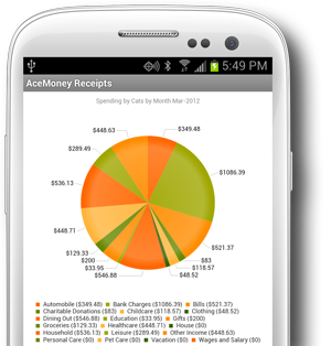 AceMoney Receipts is an excellent addition to the desktop version of AceMoney Personal Finance Software. It is easier to record a receipt right at the store, is it not? Not only that, you have a copy of your receipt instantly, in case you lose the original or throw it away. It lets you track your expense receipts on the go, or at your leisure. You can upload your receipts to the AceCloud and sync them with your desktop any time you like, over your mobile connection, or at home over WiFi. Plus, see your personal finace reports based on data in your main file anywhere you are. You can take the reports with you virtually anywhere. Learn how to use it efficently by reading Quick Tutorial